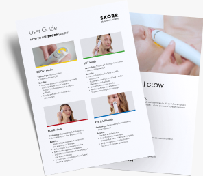 The SKORR|GLOW Device is intended for facial and body stimulation and is indicated for over-the-counter cosmetic use. Read User Manual thoroughly before using your SKORR|GLOW device.